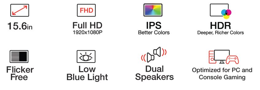 1.15.6’’ IPS panel, 1920*10804 Presolution and 16:9 aspect ratio